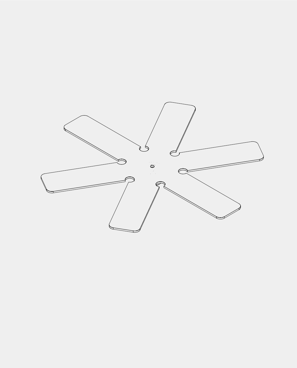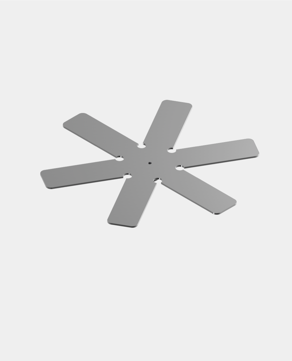 Die sternförmigen Zungen lassen sich fertig in der gelieferten flachen Form verwenden oder bei Bedarf sehr einfach an gewölbte Formen eines Objekts, zum Beispiel einem Helm, anpassen. Die Konstruktion aus Blech bietet eine stabile, sichere Auflage für das Exponat.
