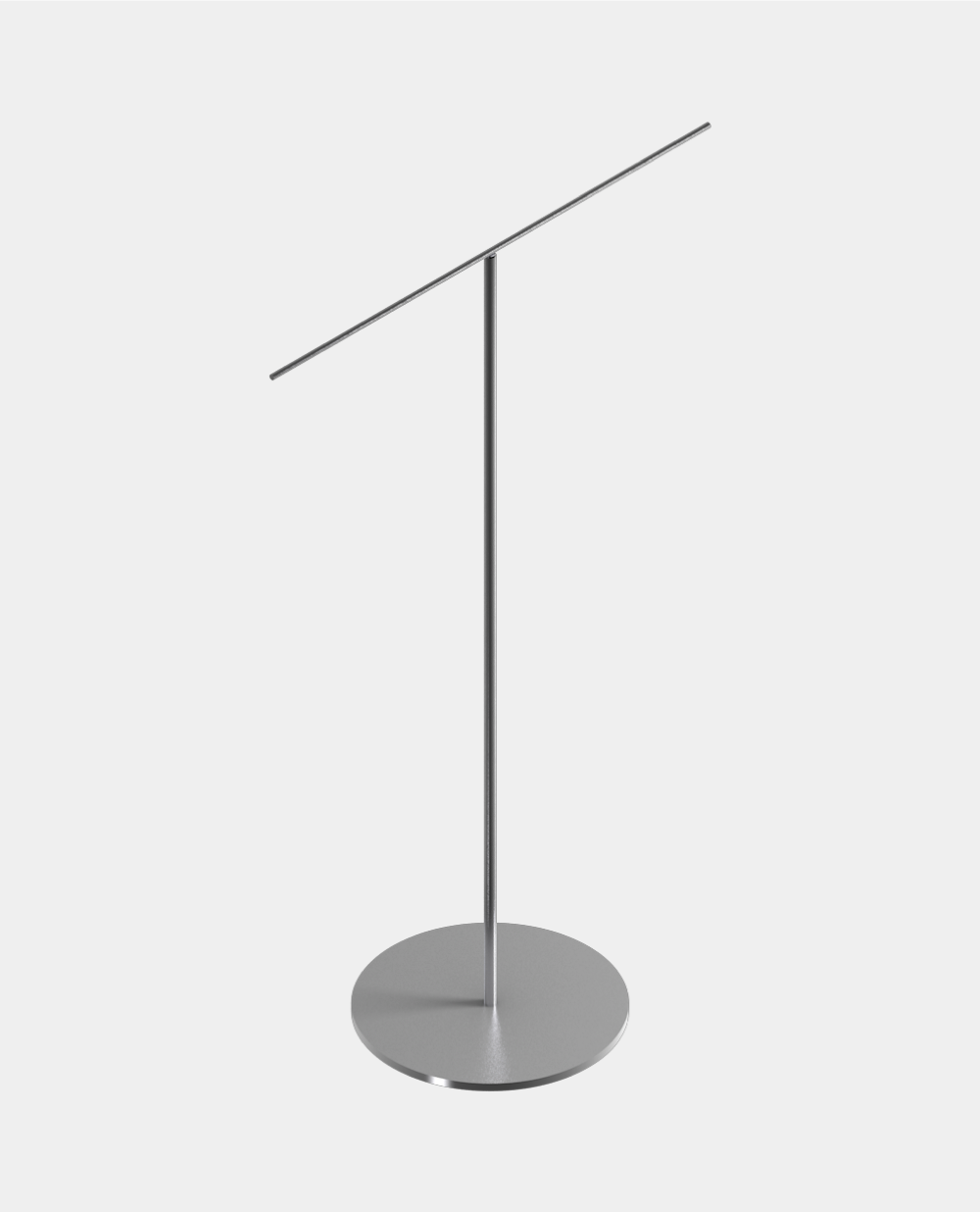 Der Objektaufsteller T-Kralle aus Edelstahl ist ein fertiger Objekthalter mit Standfuß zur Aufstellung auf geraden Flächen wie Vitrinen- und Podestböden in Ausstellungen.