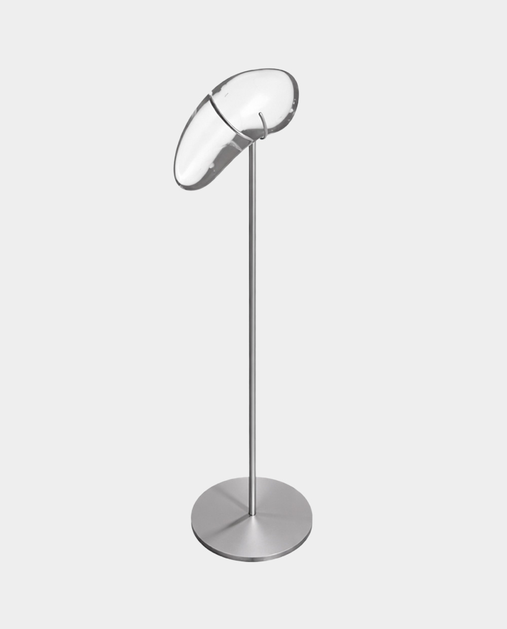 Der Objektaufsteller X-Kralle aus Edelstahl ist ein fertiger Objekthalter mit Standfuß zur Aufstellung auf geraden Flächen wie Vitrinen- und Podestböden in Ausstellungen.