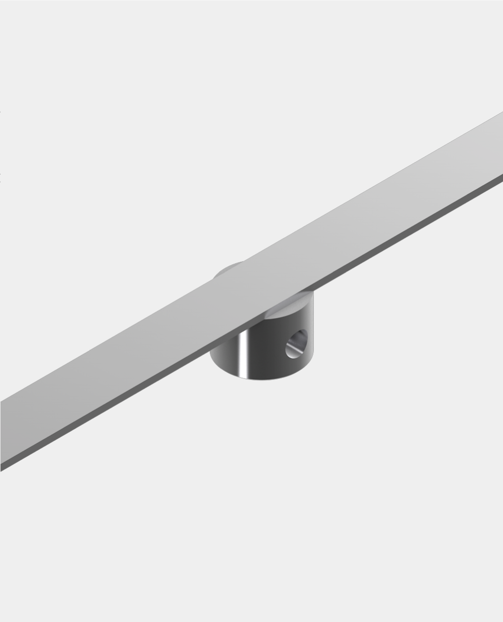 Die integrierten Stellringe zur Verbindung mit weiteren KLIO-Elementen weisen einen kleinen Durchmesser auf. Im Montagezustand befinden sie sich hinter dem Objekt und sind damit unsichtbar. Geeignet für horizontale und vertikale Objektpräsentation.