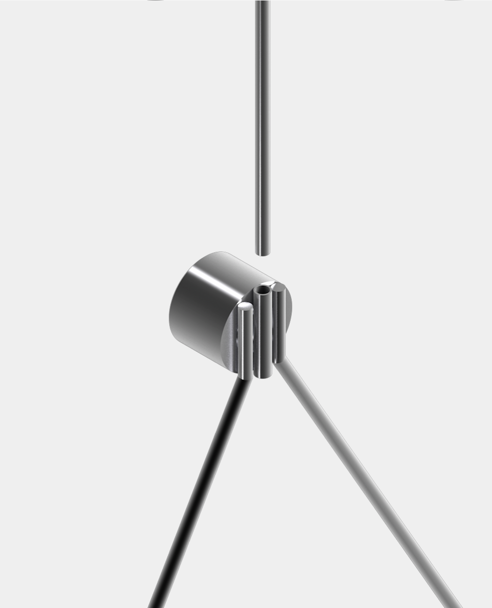 Der kompakte runde Funktionsblock bietet drei Runddrähte für die Objektmontage. Die beiden unteren sind fest angefügt – in ihnen ruht das Exponat. Der obere, einzelne Draht in der `12 Uhr Position´ sitzt jedoch flexibel und beweglich in einer feinen Röhre. Für eine Objektmontage wird das Objekt ohne Spannung auf die zwei festen Drähte gesetzt und schließlich mit dem oberen sanft verschlossen.